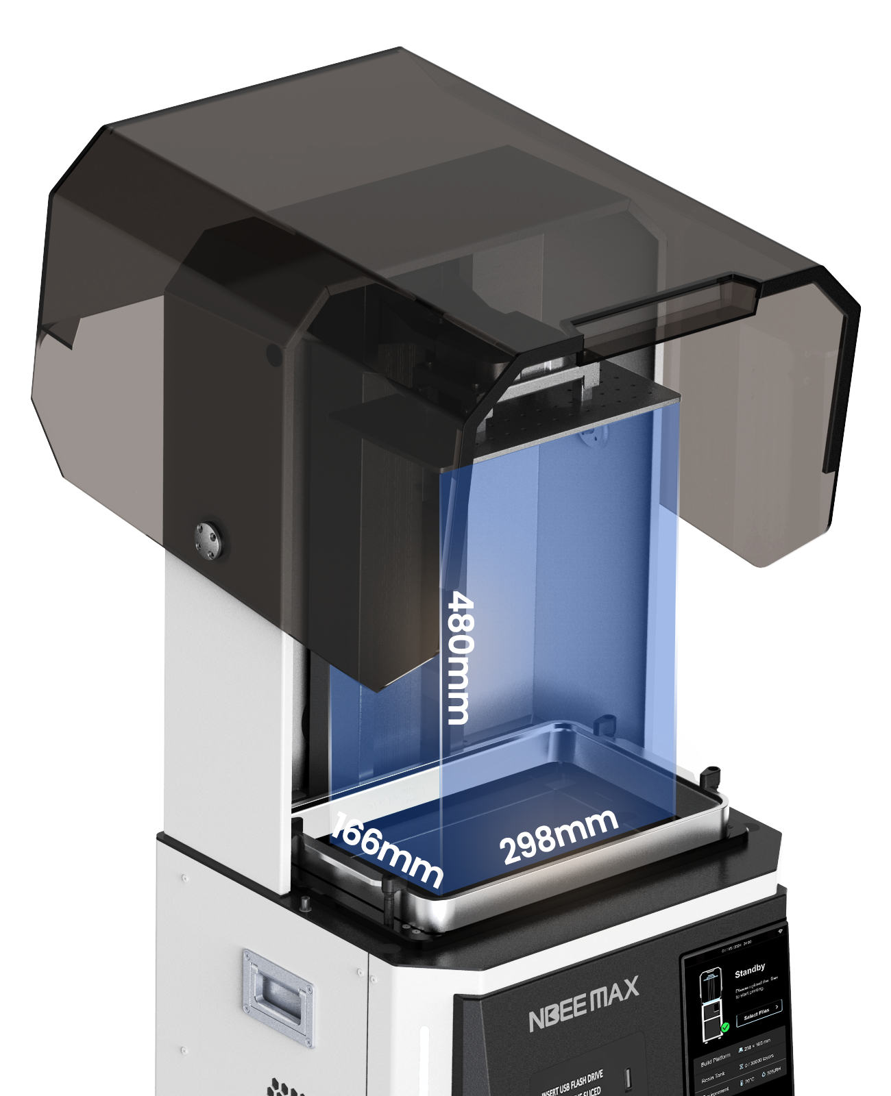 NBEE Max siūlo 298 mm x 166 mm x 480 mm pastatymo erdvę, leidžiančią sklandžiai spausdinti didelius, sudėtingus modelius jų neskirstant į segmentus. Įrenginys optimizuoja serijinę gamybą, įgalindamas vienu praėjimu atspausdinti daug mažesnių elementų, padidindamas efektyvumą ir iš naujo apibrėždamas didelio masto 3D spausdinimo galimybes.
