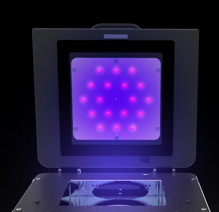 uCure yra itin greita energijos tankio LED kietėjimo stotis 120 000 mJ/cm² ir šviesos vienodumą lygiu 90%. Užtikrina nelipnų paviršių ir pakartojamą matmenų tikslumą įvairiuose protezavimo, ortodontijos ir laboratoriniuose pritaikymuose. Puikiai tinka kaip paskutinis etapas po 3D spausdinimo, kai svarbus mechaninis stabilumas ir švari elemento apdaila.