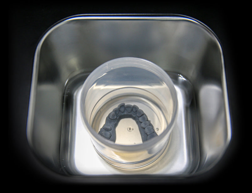 Idealus sprendimas lygintuvų, protezų modelių, chirurginių kreiptuvų ir kitų 3D spausdintų dantų gaminių valymui – greitai, pakartotinai ir be rankinio šveitimo.