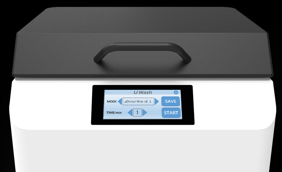 uWash kruopščiai nuplauna 3D spausdintus elementus tiesiog 6 minutes (2 skalbimo ciklai). Galinga ultragarsinė pavara efektyviai pašalina nesukietėjusias dervos likučius ir suteikia paviršių be lipnų, paruoštą galutiniam kietėjimui.
